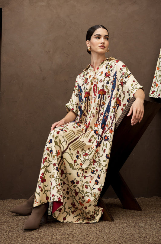 نفذت الكميةفستان قميصي فضفاض باللون البيج مع نقشة زهور