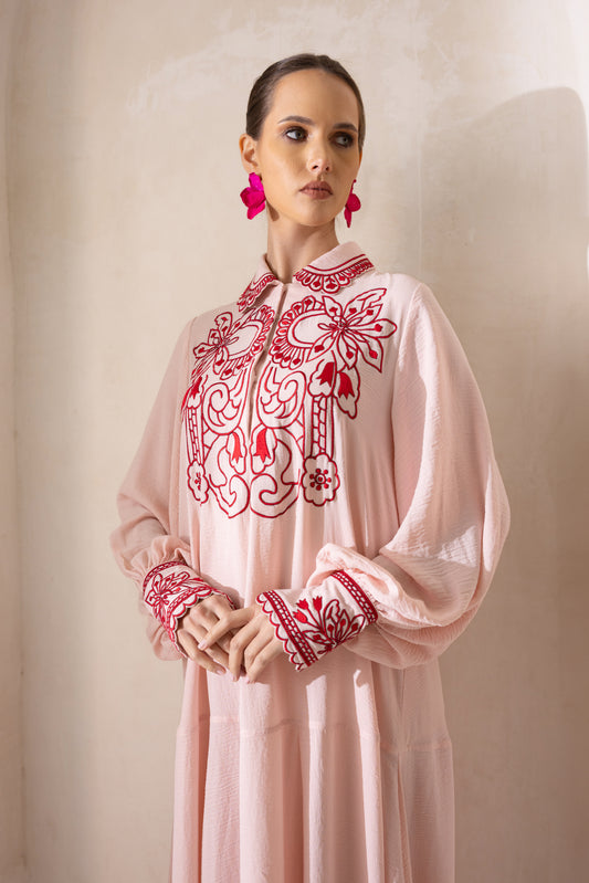 نفذت الكميةجلابية مطرزة بأزرار وزهور