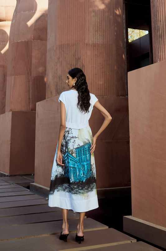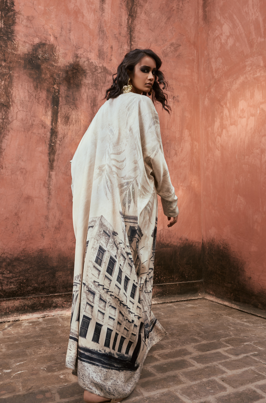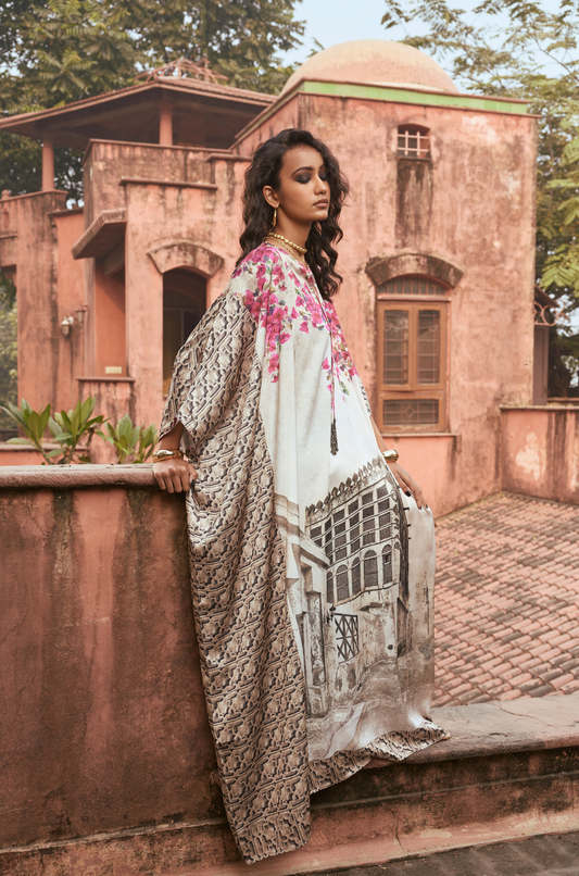 جلابية هندسية زهرية باللونين الأبيض والأسود