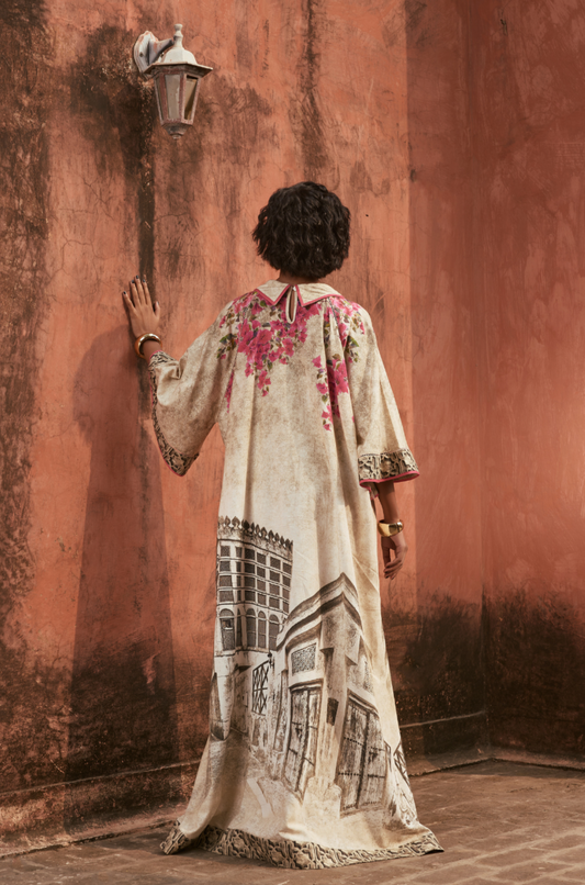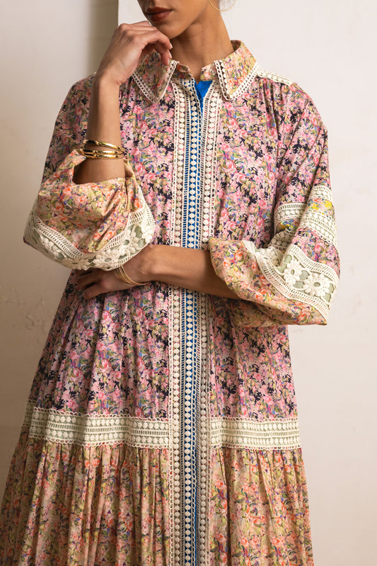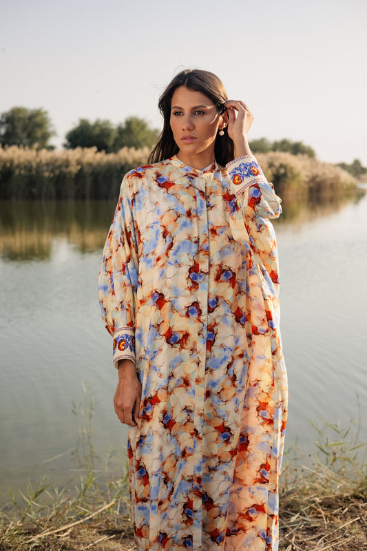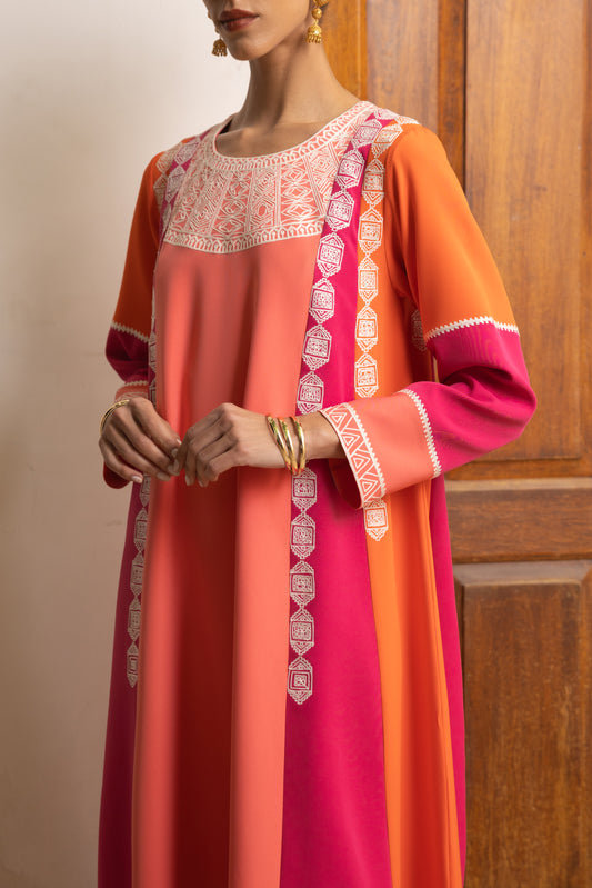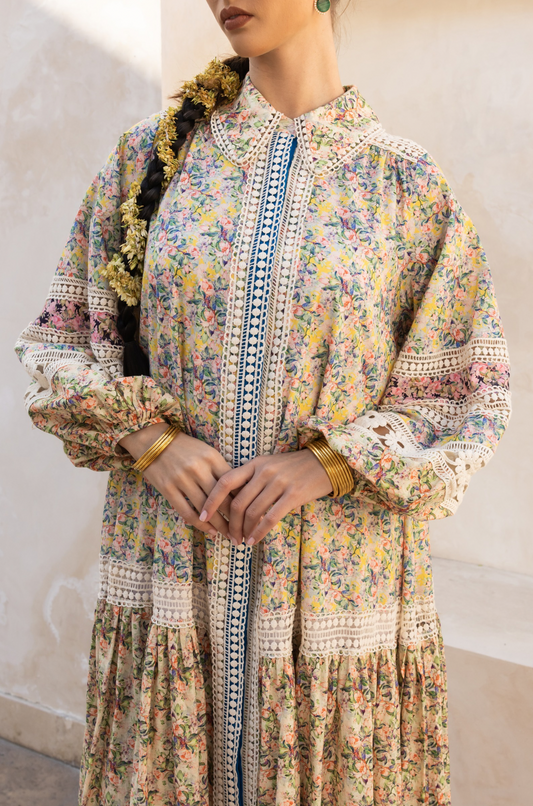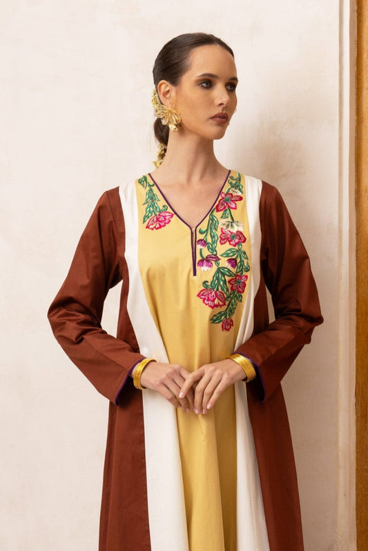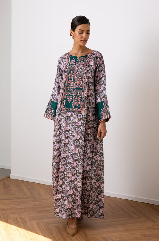 جلابية مطرزة بنقشة الزهور بألوان متعددة