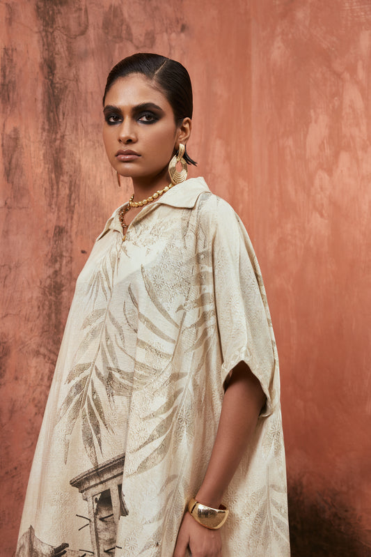 فستان بأكمام من رداء الصحراء - أصفر فاتح