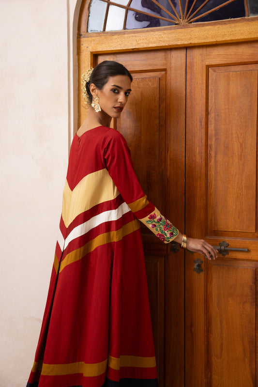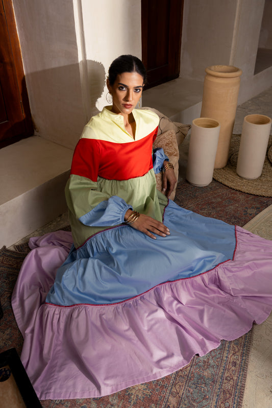 جلابية ذات حاشية مكشكشة ذات ألوان متعددة