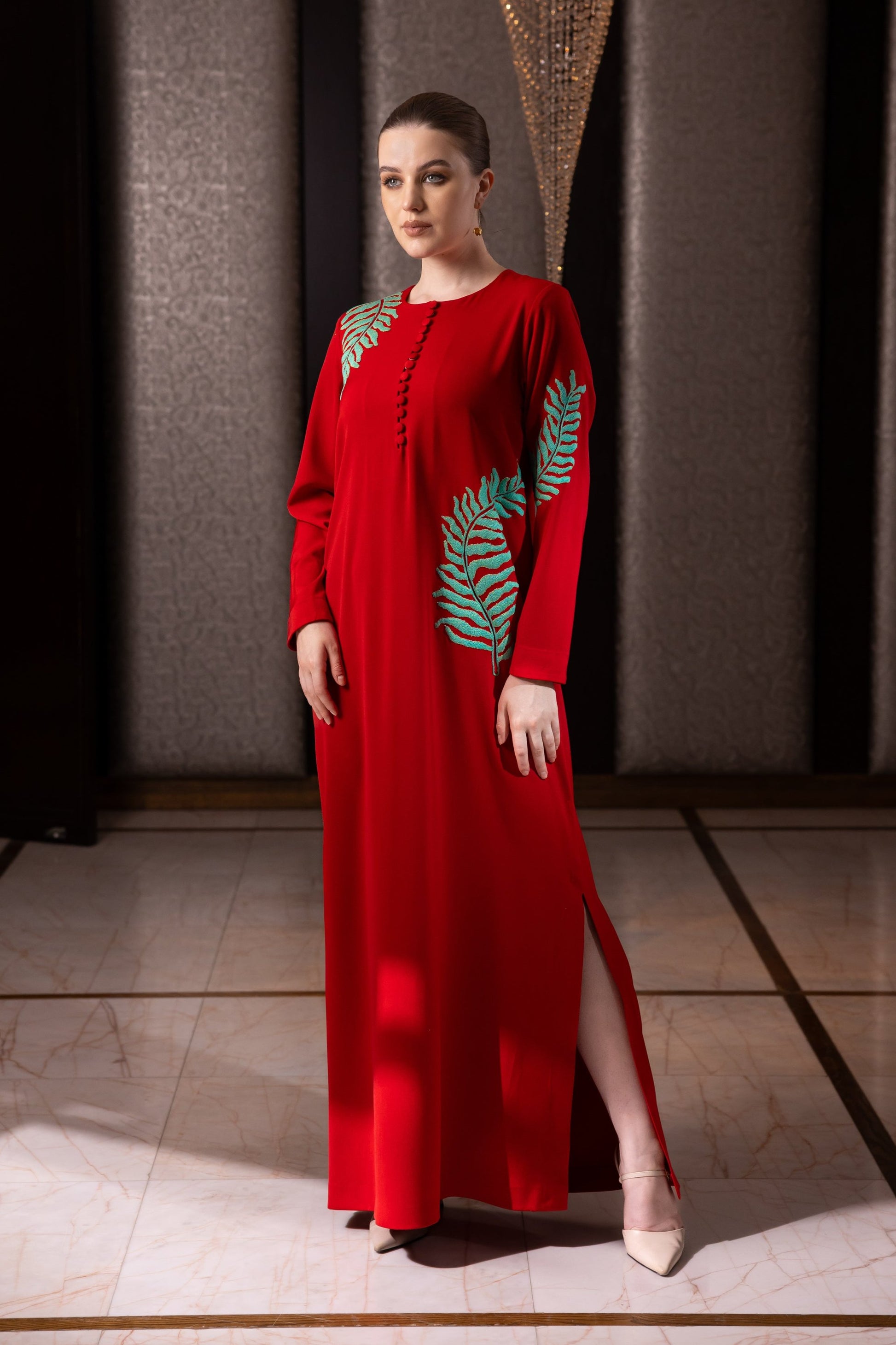 يتميز بتطريز غزل دوري مذهل. يوفر هذا الفستان المصمم على طراز القفطان راحة خفيفة الوزن وفاخرة ، وهو مثالي ليوم من الترفيه أو مناسبة خاصة. مع تصميم مستقيم وتفاصيل شق جانبي وأزرار منقوشة أنيقة ، سيجعلك هذا الفستان تشعر بالأناقة والأناقة دون عناء.