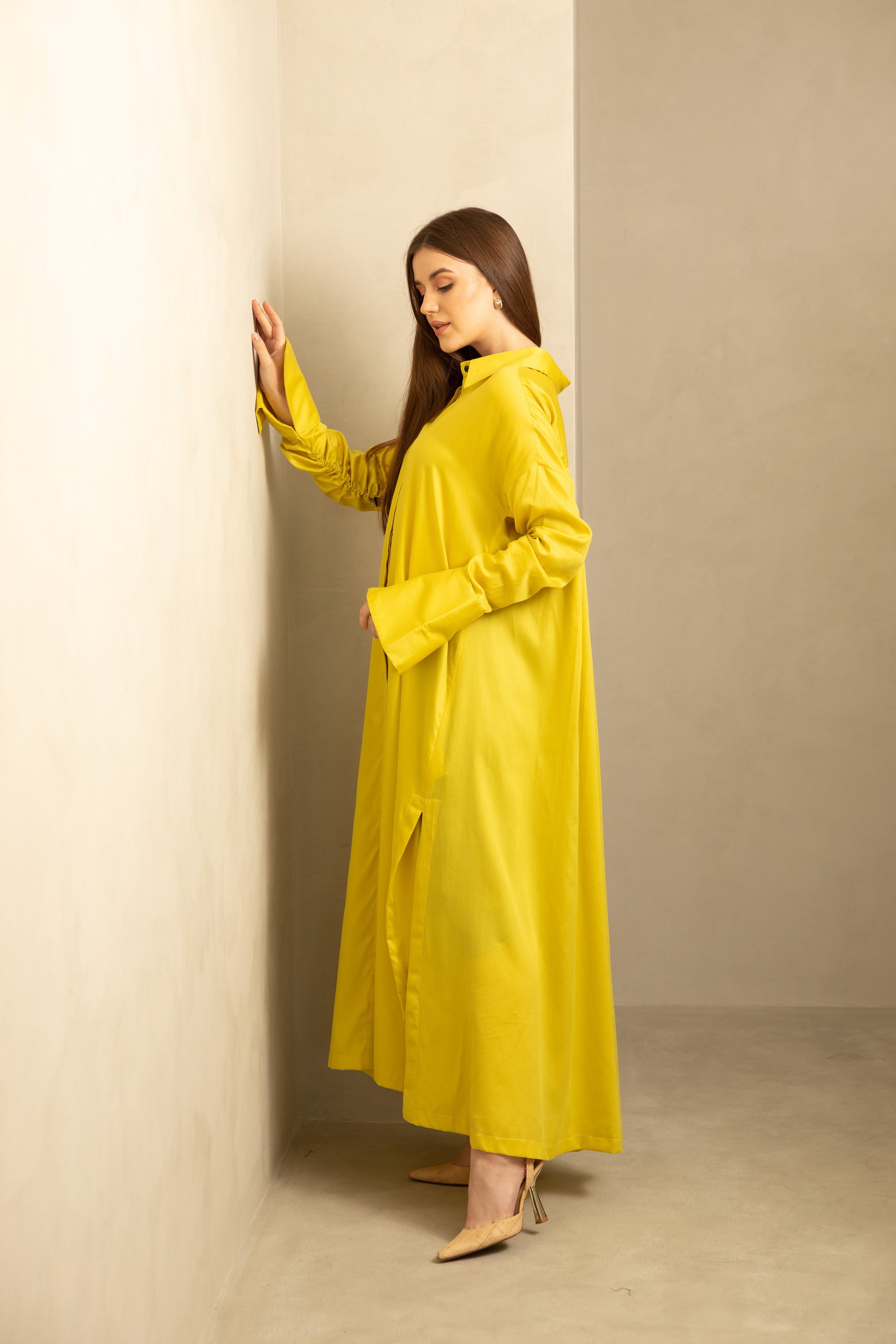 فستان قميص بأكمام مجمعة