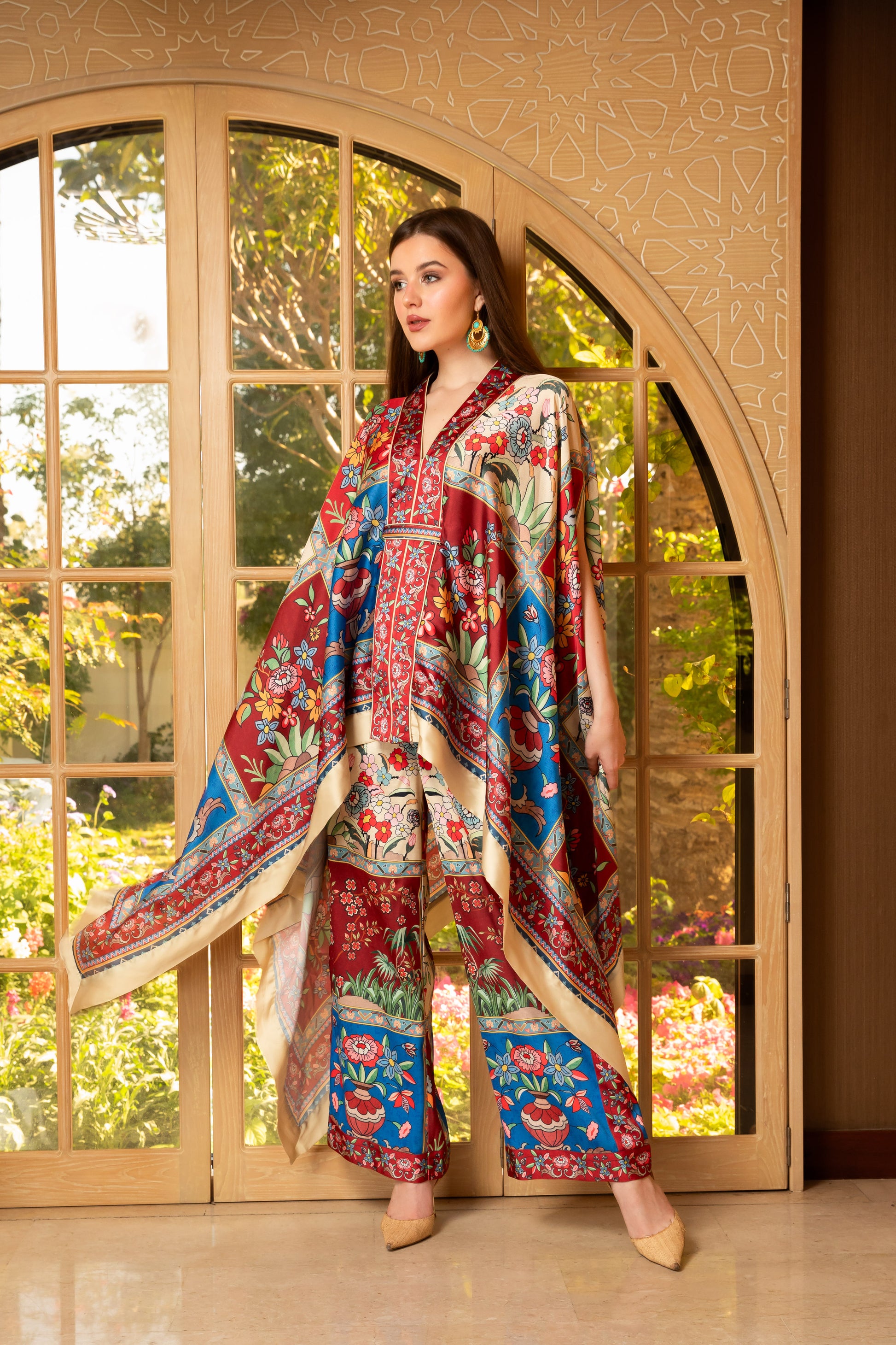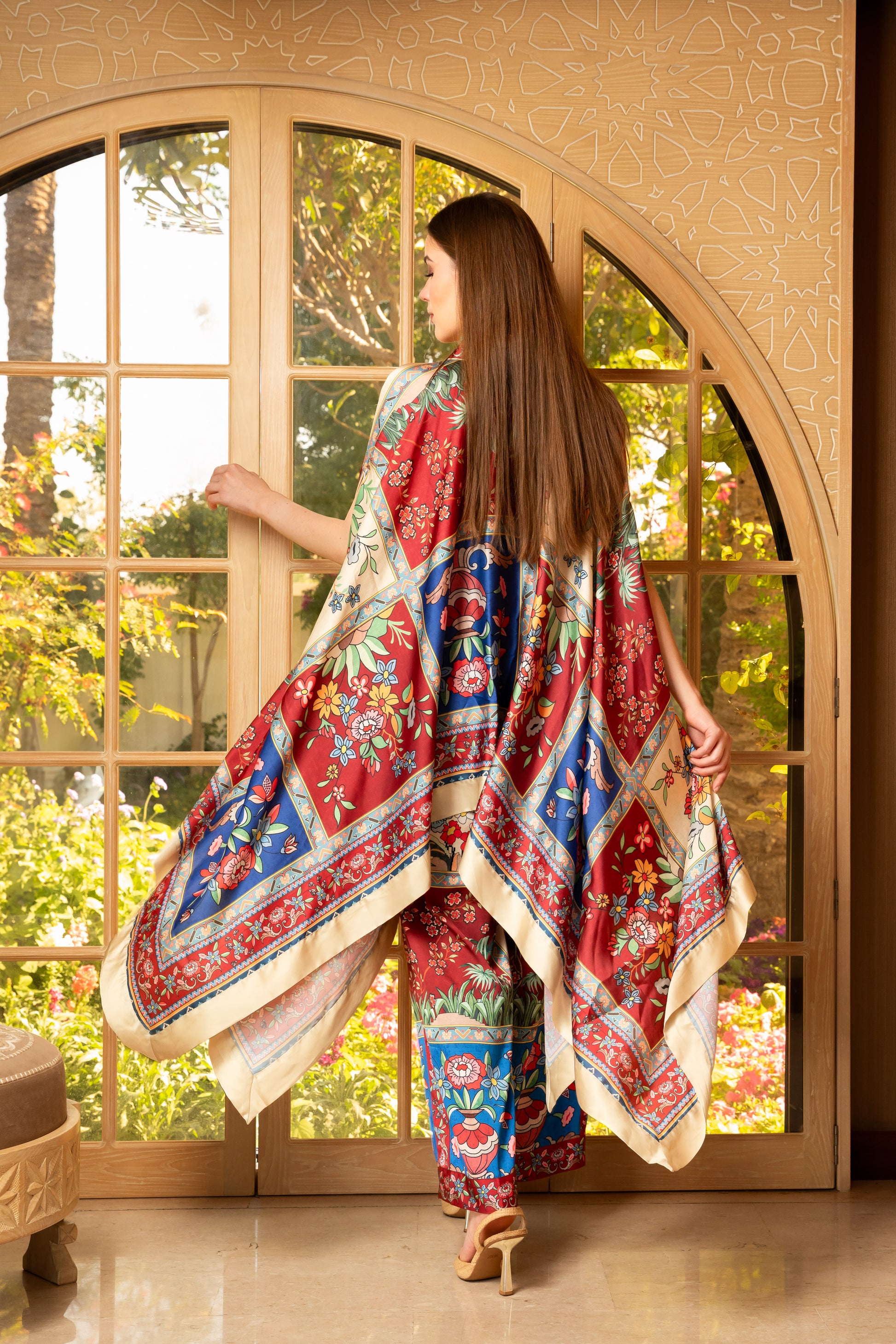 قطعة مميزة لأي مناسبة، تتميز هذه المجموعة الحريرية المكونة من بلوزة وبنطلون بطبعة زهور رائعة وخصر محكم. مصنوعة من حرير عالي الجودة، هذه المجموعة مريحة وأنيقة، مما يجعلها ضرورية لأي خزانة ملابس عصرية.