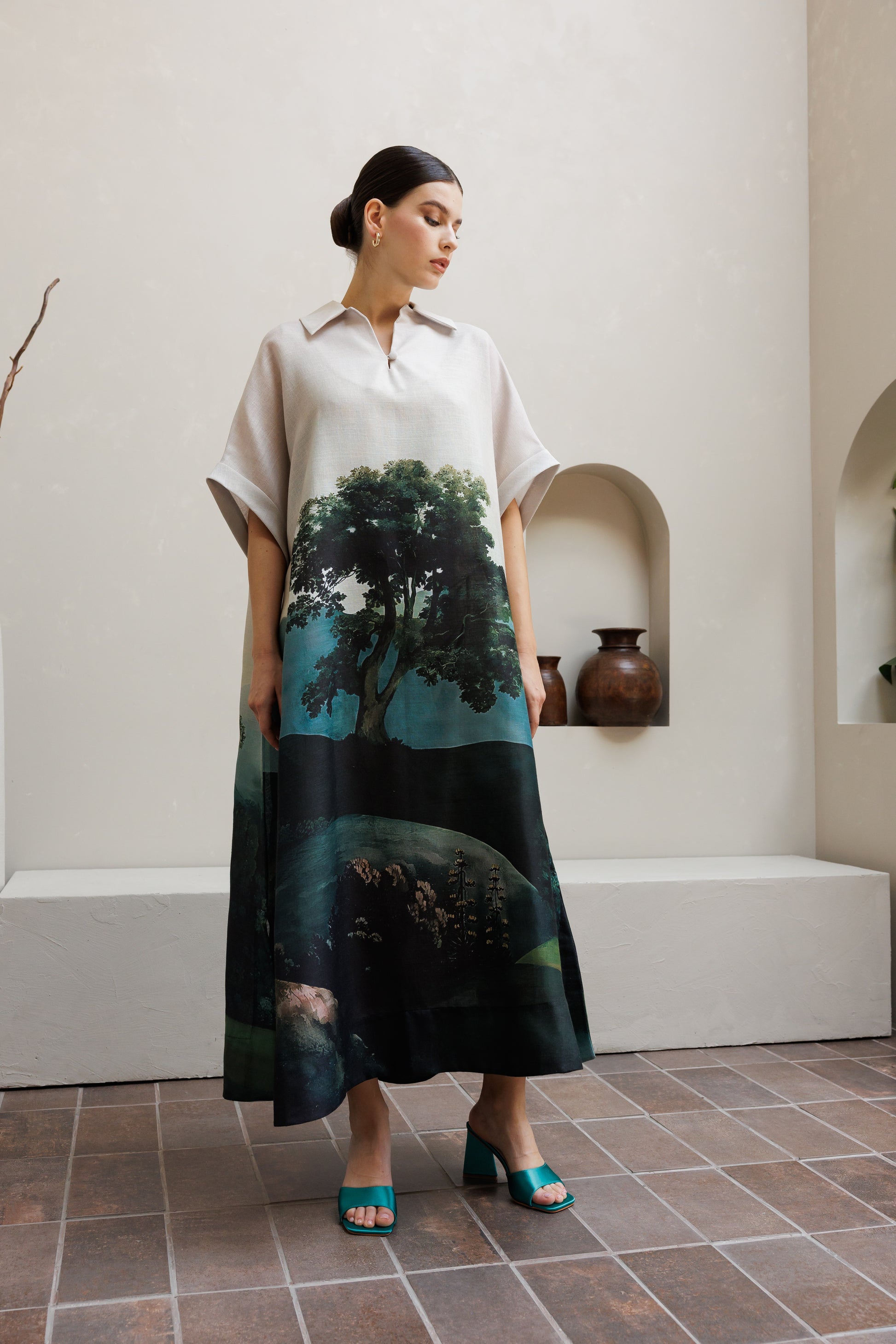 ترجم روعة وجمال الطبيعة في قميص من الكتان بفتحة جانبية، اصطحب معك أجواء الطبيعة الاستوائية الدافئة أينما ذهبت مع قميصنا الكتاني الأنيق. صُمم لإبراز جمال هذه الشجرة المهيبة،