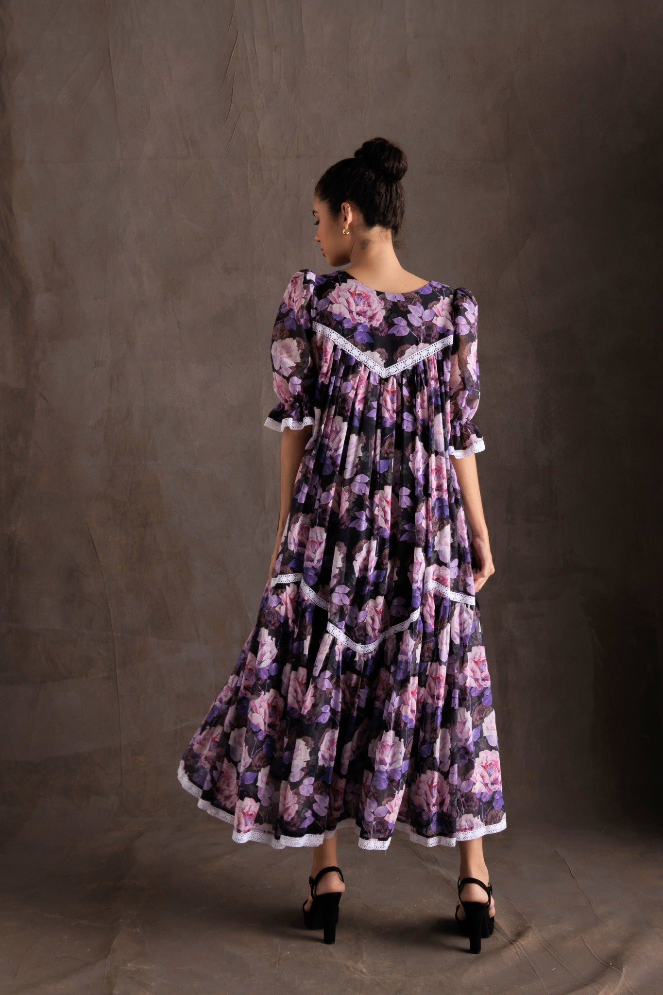 فستان مزين بالزهور - البنفسجي