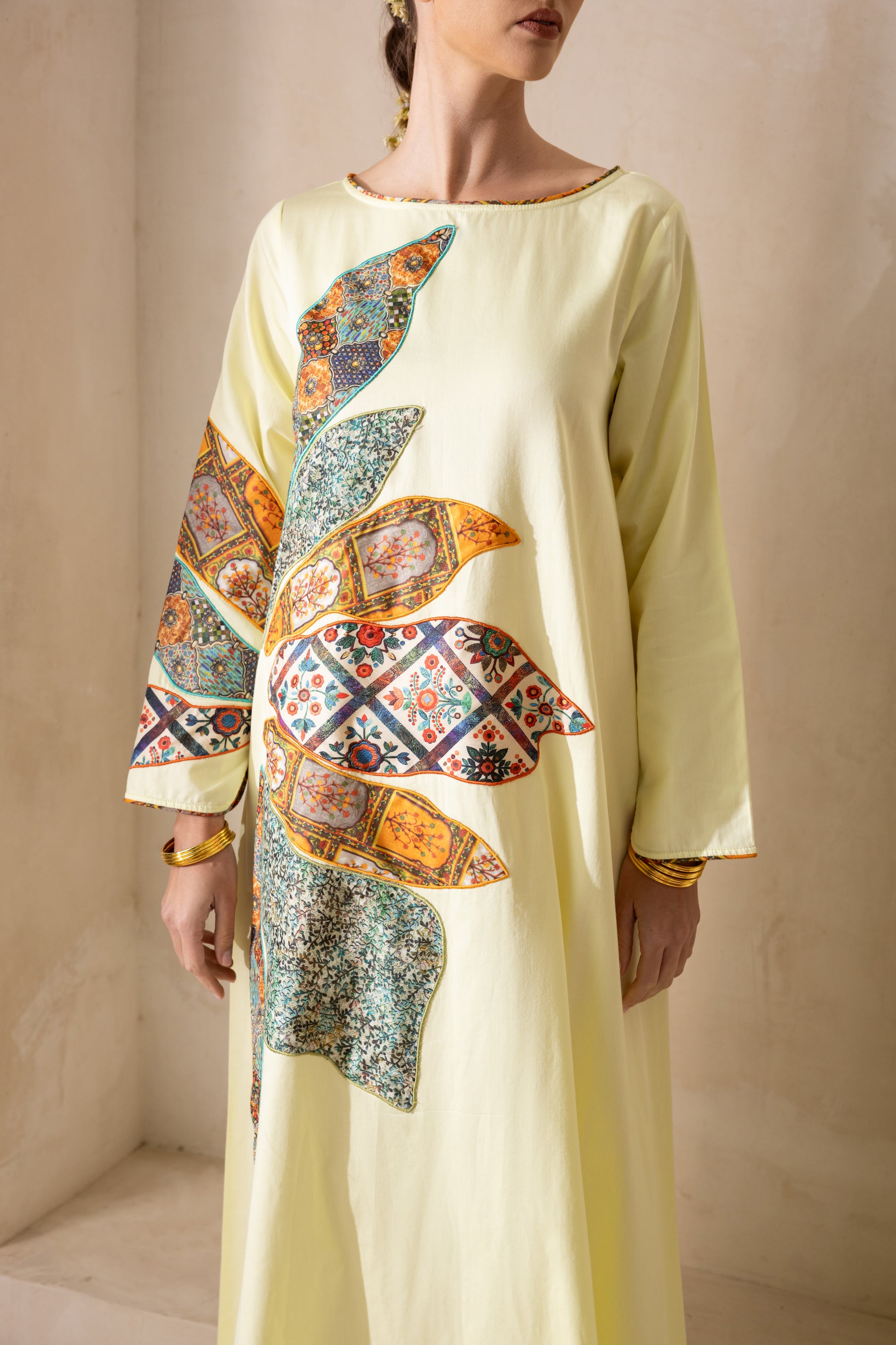 اكتشف التوازن المثالي بين الفخامة والأناقة مع هذه الجلابية ذات غطاء المصباح. تضيف رقعة أوراق الشجر المعقدة لمسة من الأناقة، بينما يضمن التصميم المقطوع على شكل حرف A الأناقة والراحة.