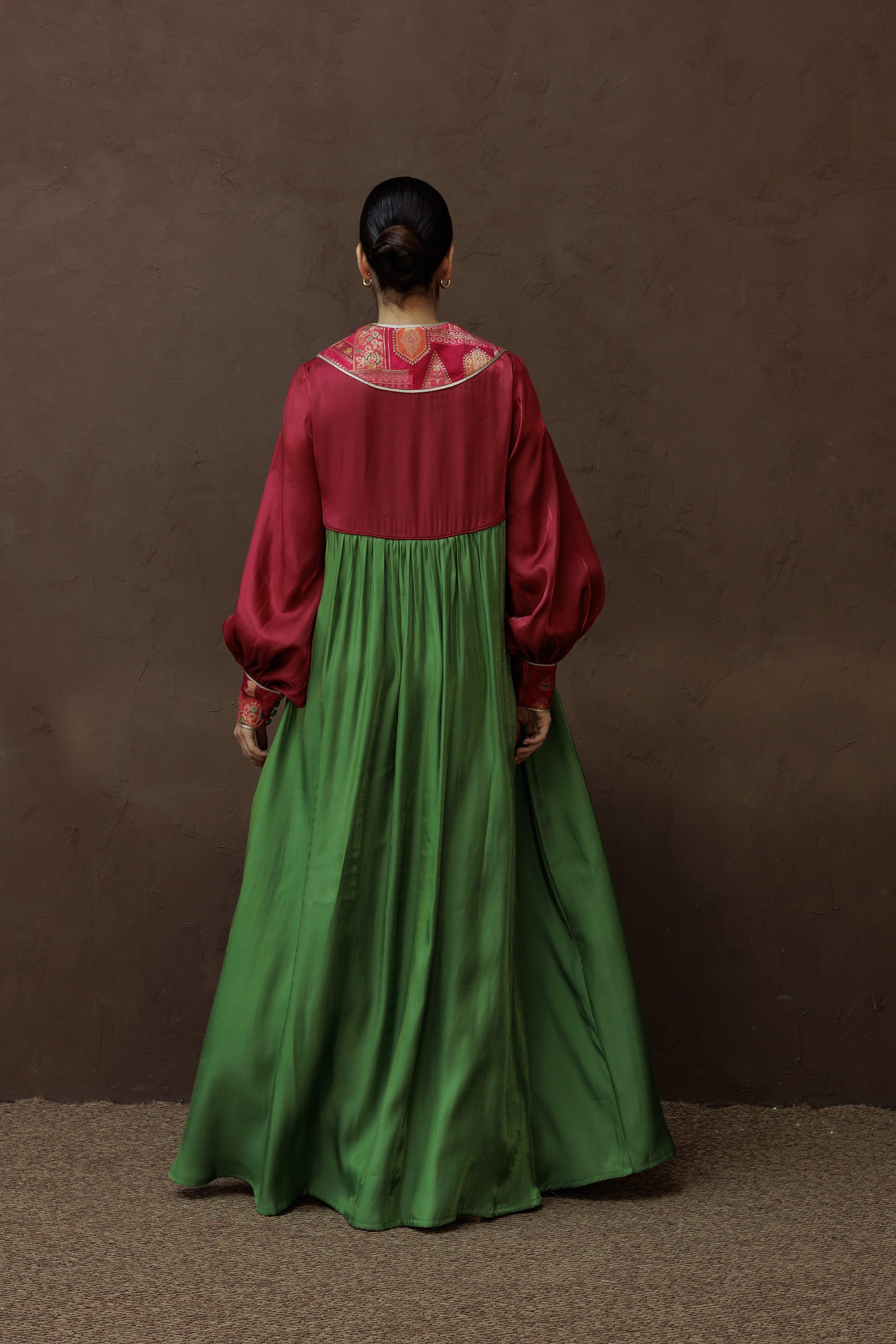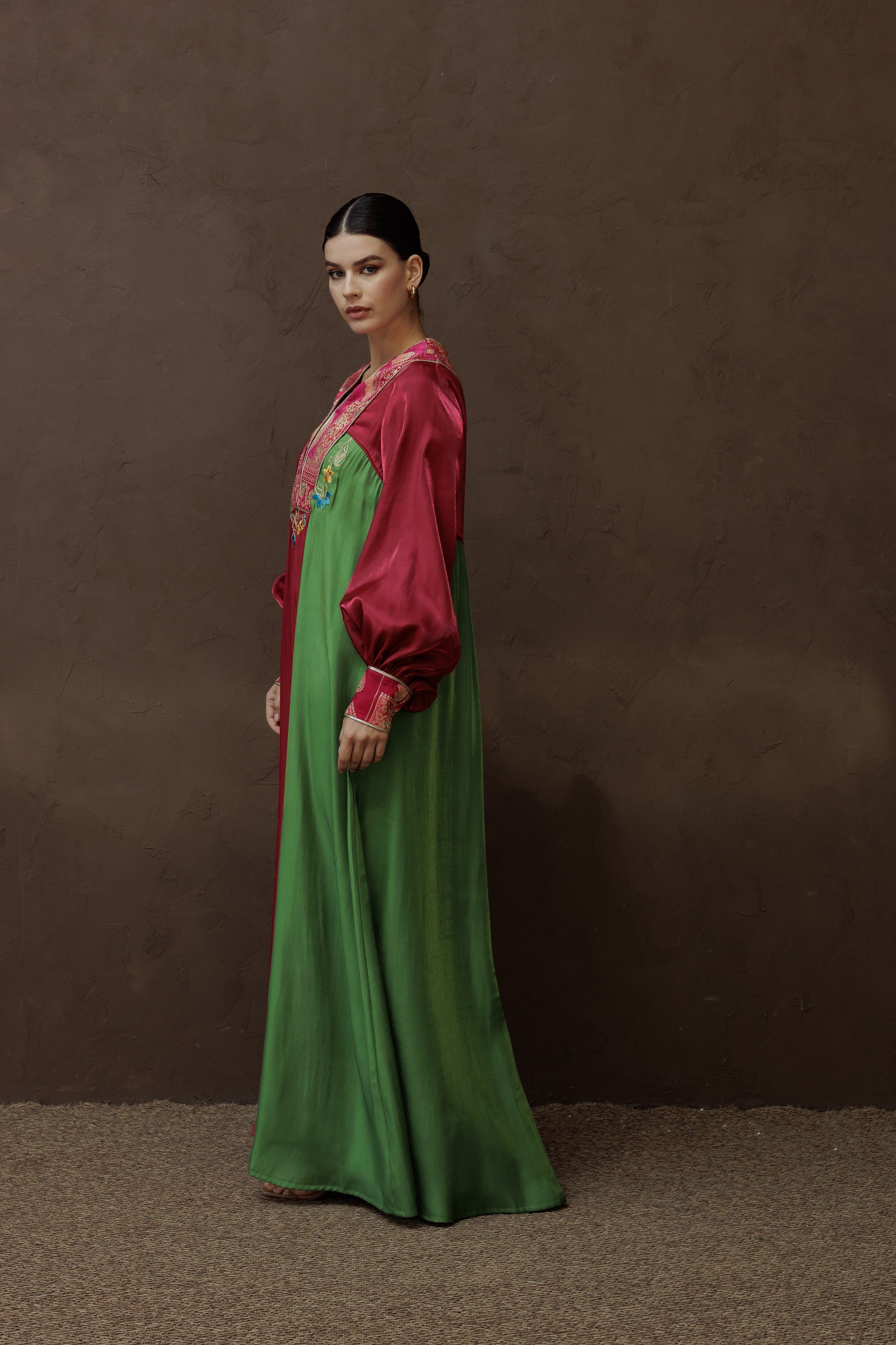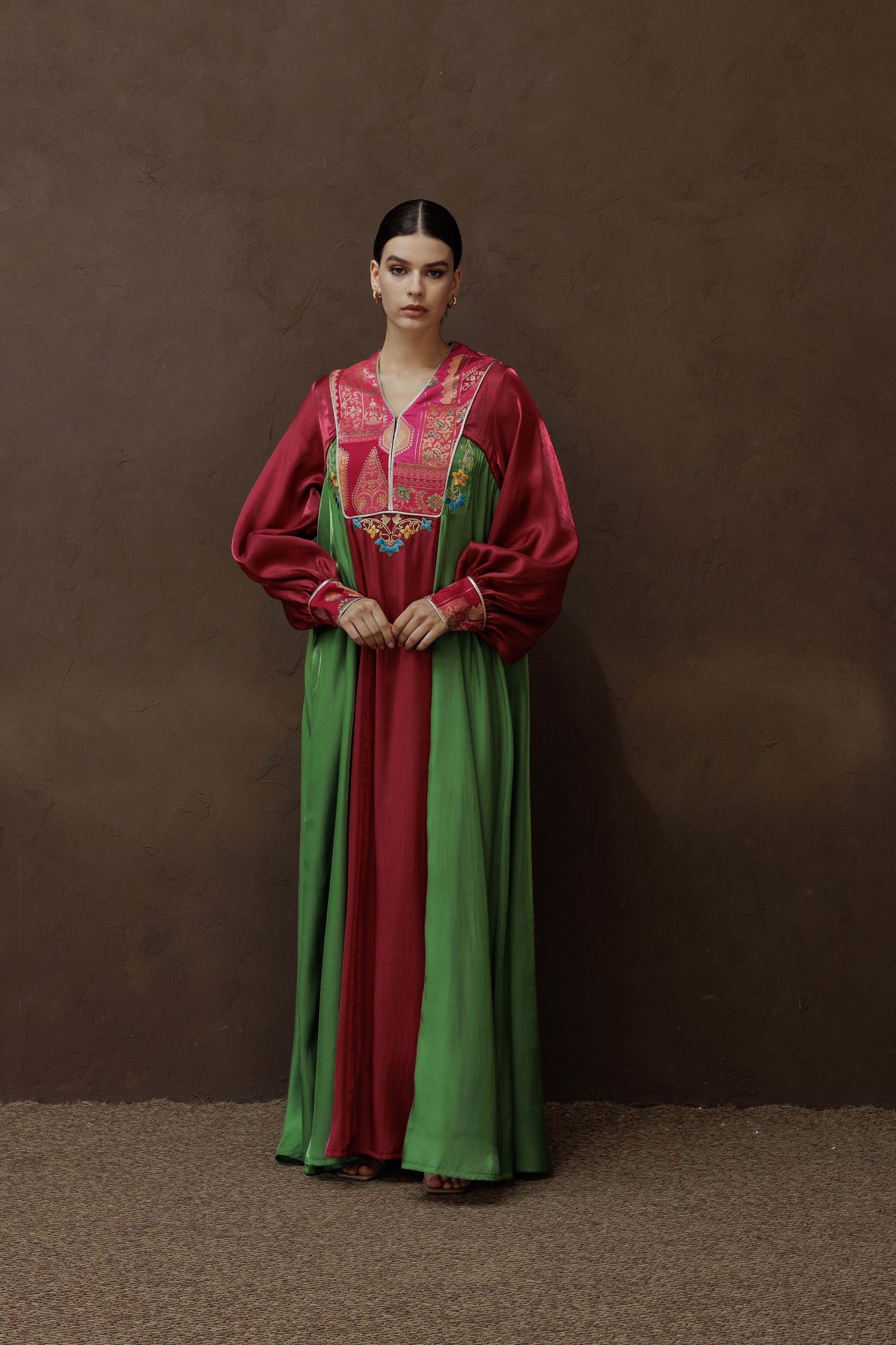 استمتعي بالأناقة مع هذه الجلابية التي تتميز بتصميم أنثوي من القطن اللامع ثنائي اللون