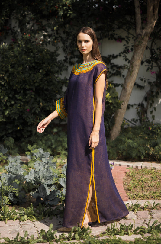 Black Floral Threaded Kaftan