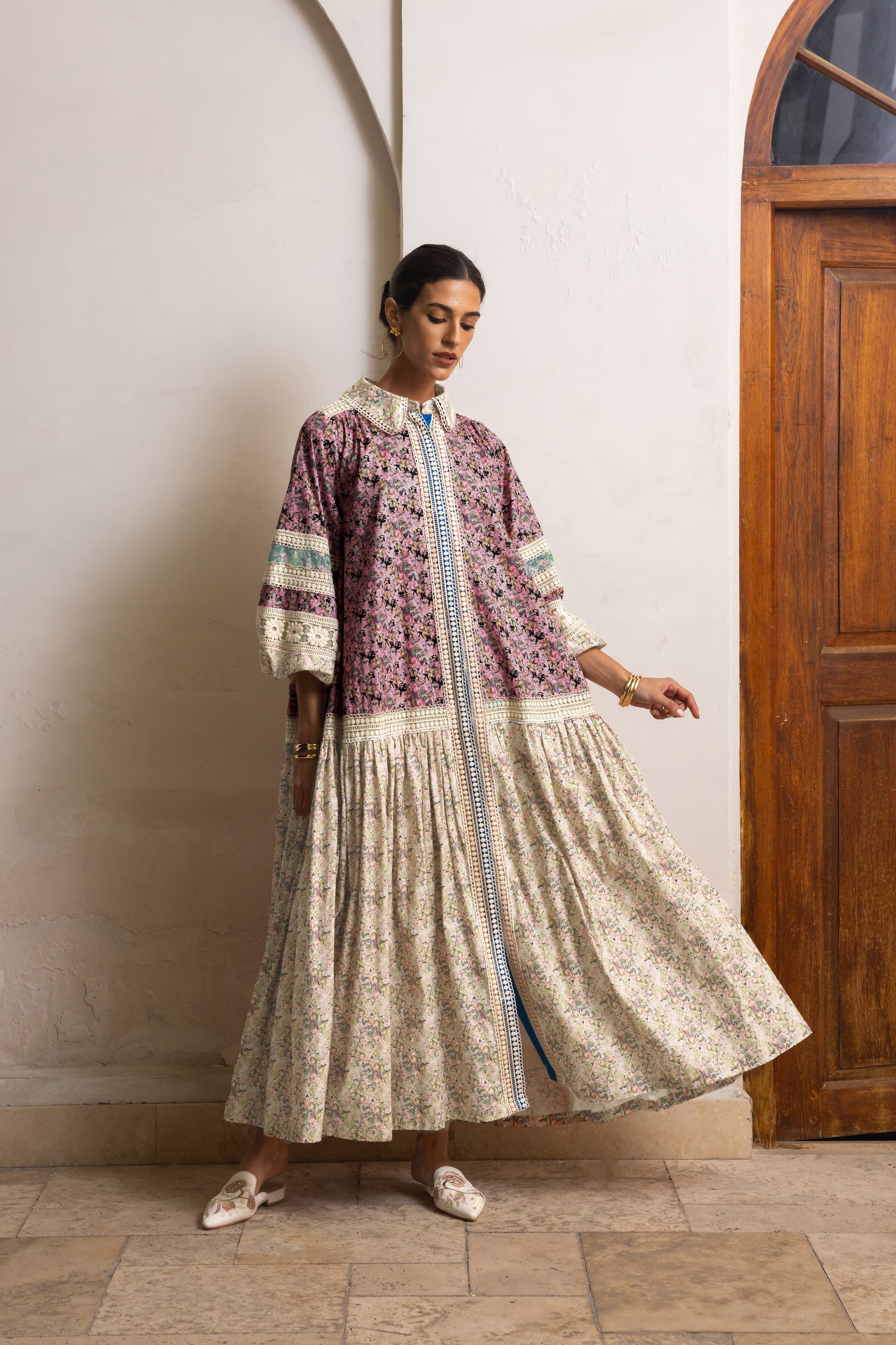 This dress features intricate lace detailing and a graceful collar neck. The billowy, puffed sleeves add a touch of whimsy to this elegant piece. This dress will give you the confidence to shine.