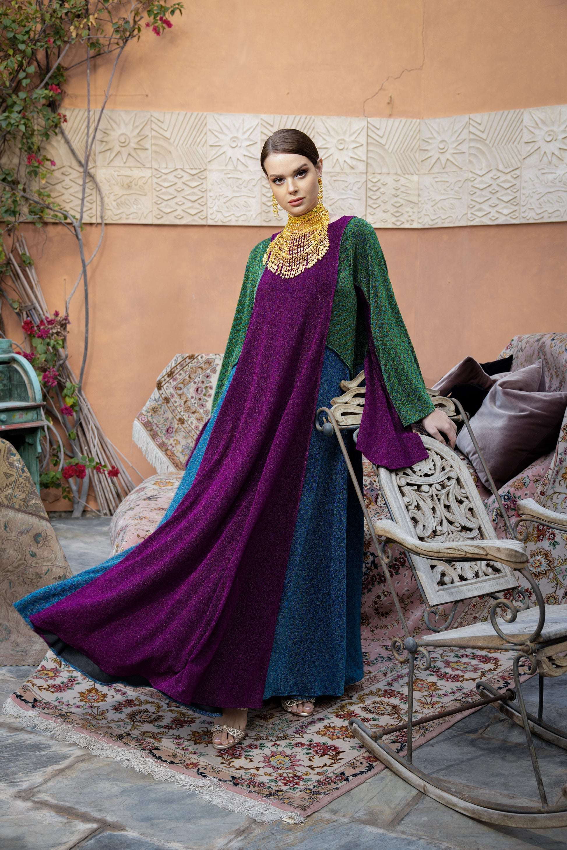 A statement piece designed to embody modern elegance and effortless movement. This color block dress features refined cut-out details that add a contemporary touch, while the bell sleeves create a soft, graceful silhouette. Crafted with a flowy design, it offers both comfort and sophistication, making it perfect for elevated day looks and evening occasions.